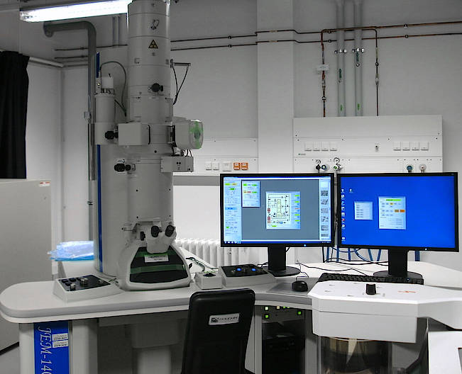 The CMCB EM/Histo Facility has got a brand new Transmission Electron Microscope. The 120 kV Jeol JEM 1400 comes with a picture overlay programe for routine inspection and CLEM.
