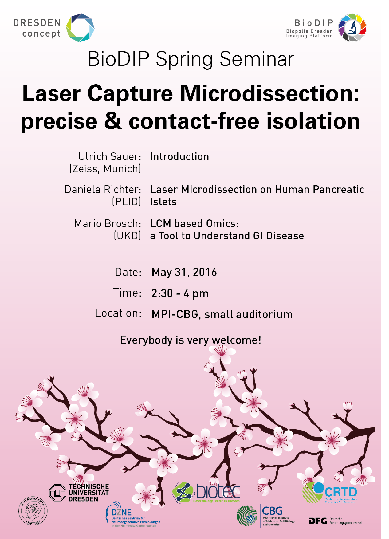 The spring seminar is dedicated to laser capture microdissection (LCM), a technique that allows contact- and contamination-free collection of specific tissue, cells, or subcellular structures.