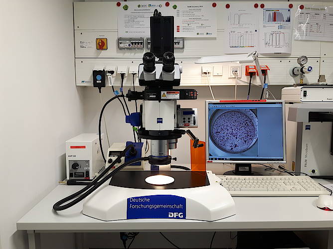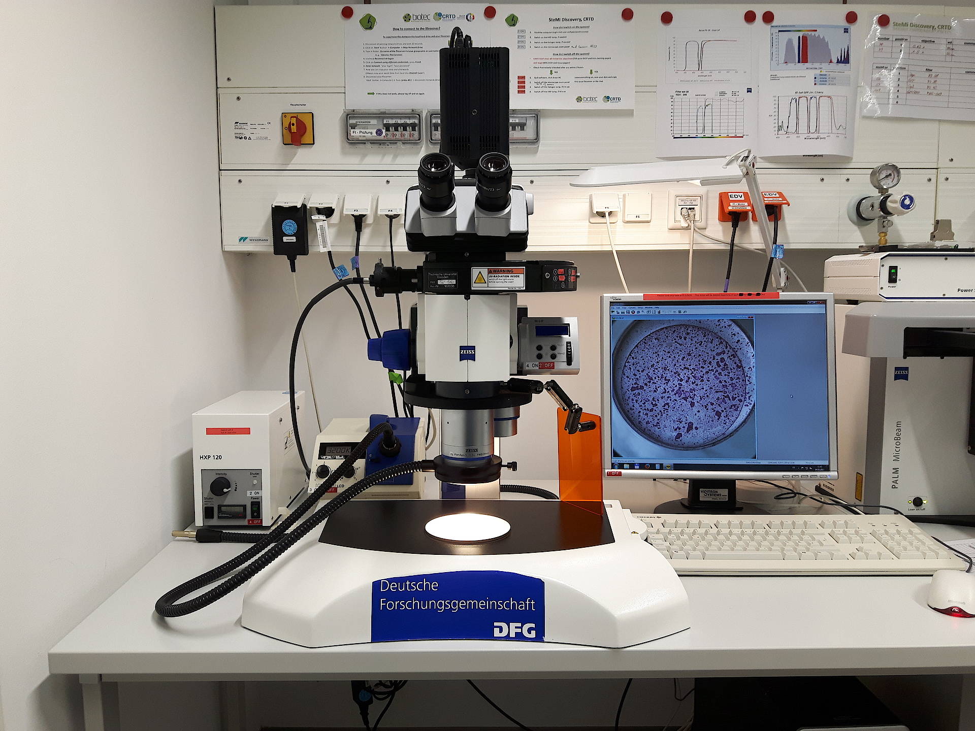 It is an upright stereo microscope with a large-chip color camera. It's suitable for transmitted and reflected bright-field, and for fluorescence imaging.