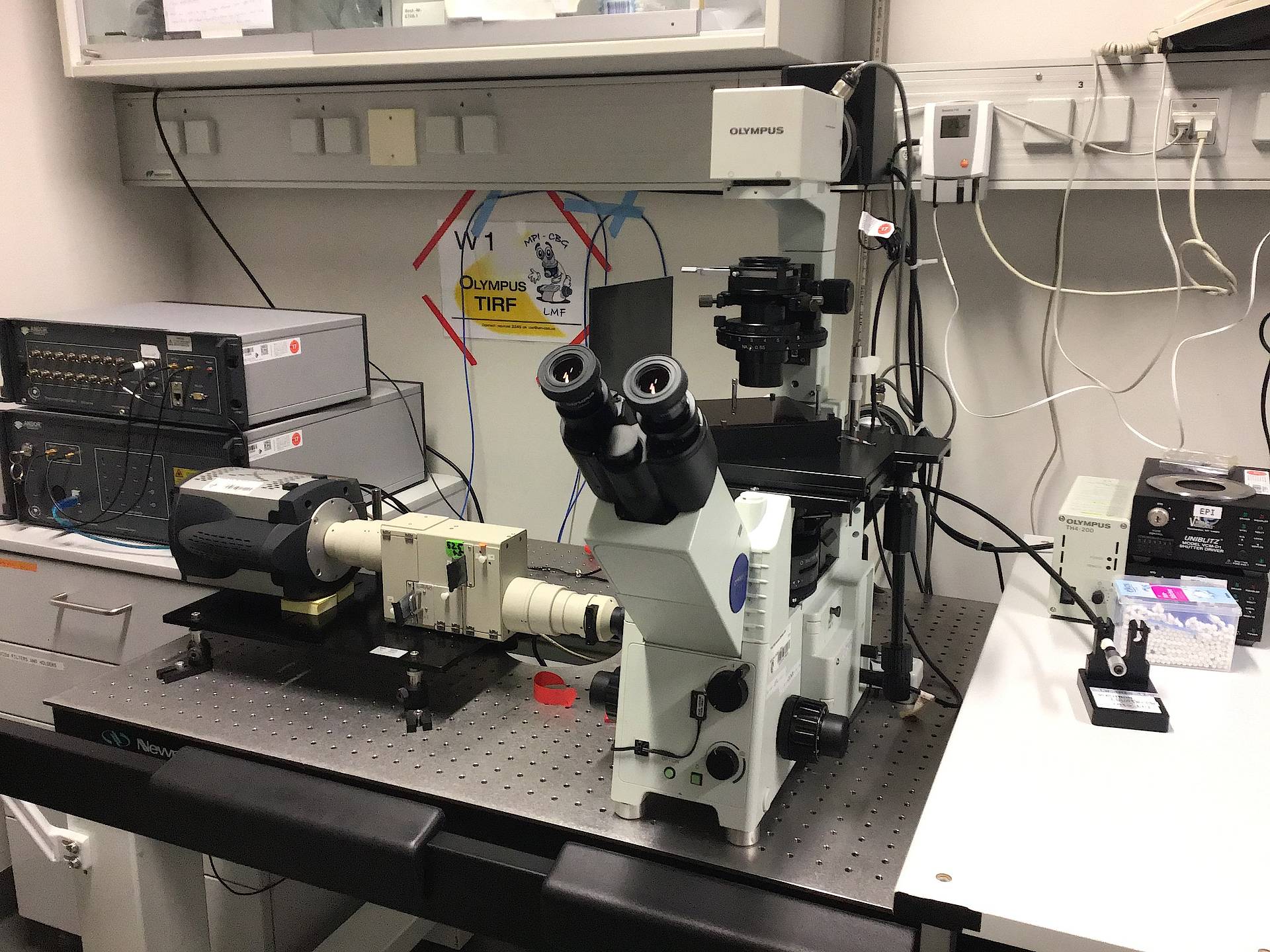 Total Internal Reflection Microscope (TIRF) Olympus setup.