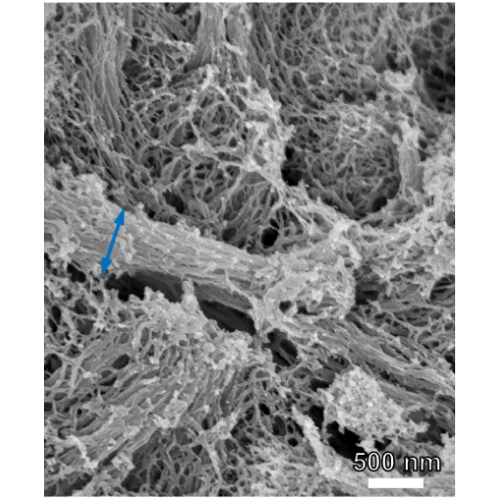 Honey bee (Apis spp.) royal jelly, a glandular secretion used to raise young larvae to future queens, has long been considered merely as food. Since queen larvae are raised upside down in their vertically oriented queen cells, royal jelly also needs to adhere the larvae to the cell ceiling to prevent the prospective queen from dropping out. This is exactly where the native acidic pH of royal jelly comes into play: only at a pH of 4.0 is royal jelly viscous enough to hold the larvae in their cells. We here show with the help of electron microscopy that royal jelly possesses a complex tissue-like organization at pH 4.0 which is similar to the dense extracellular matrix of animals providing structural support. The main structural elements at pH 4.0 are proteinaceous fibril bundles, embedded in a fibrillary net, that seem to be bunched in electron-dense structures, potential sites of fibril overlap and cross-linking. At an exogenously induced increased royal jelly pH of 7.0, these fibrillary structures are largely destroyed. This is when royal jelly viscosity decreases and holding the queen larvae in place is no longer guaranteed.
