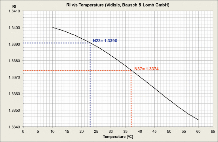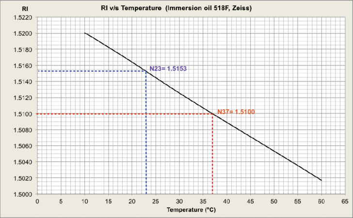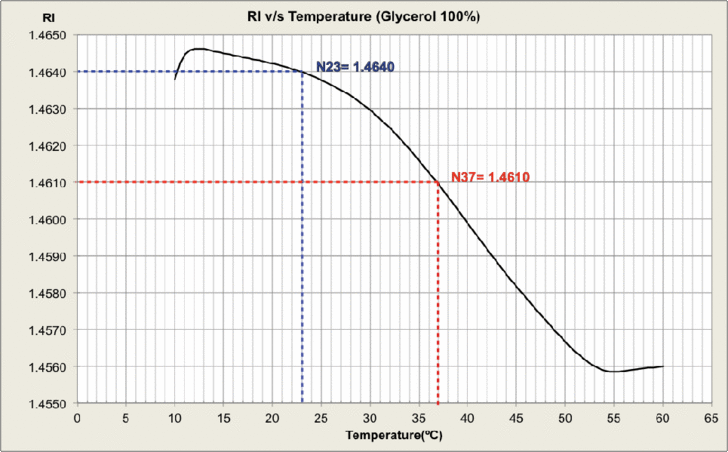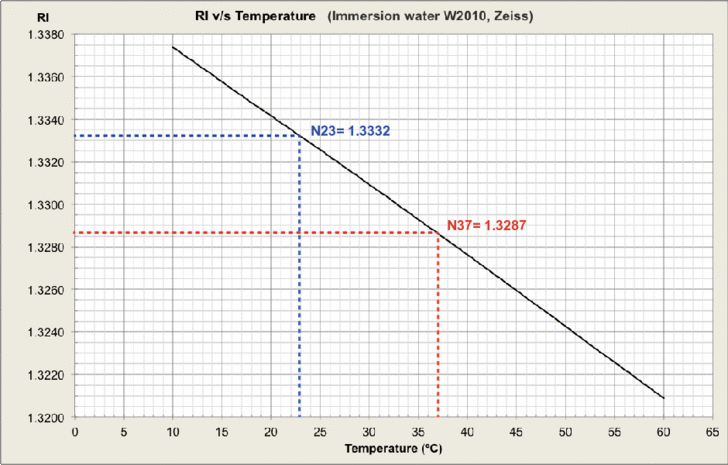 Measurements were performed at MPI-CBG LMF, with the J457 Automatic Refractometer (RUDOPLH) for each medium, in a temperature range between 10 and 60 Celsius degrees at 1 degree steps.